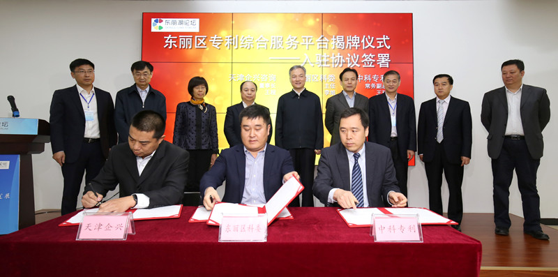 论坛正式开始前,天津市东丽区区委书记尚斌义与中心主任魏保志共同为“东丽区专利综合服务平台”揭牌。天津市知识产权局党组成员、副局长王成、东丽区区委常委、副区长白凤祥致辞。