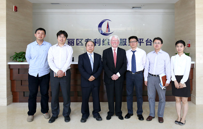 讲座开始前,Goddar教授饶有兴致地了解了审查员办公系统,并参观东丽区专利综合服务平台。(办公室 王芳/供稿,曹瀚之/摄影)